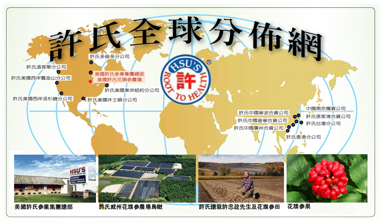 成立於1974年,位於威斯康辛州沃沙市的許氏參業集團,不僅是美加首家華人種植花旗參農,其轄下擁有超過一千英畝處女地,為全美最大種植花旗參之花旗參農場。