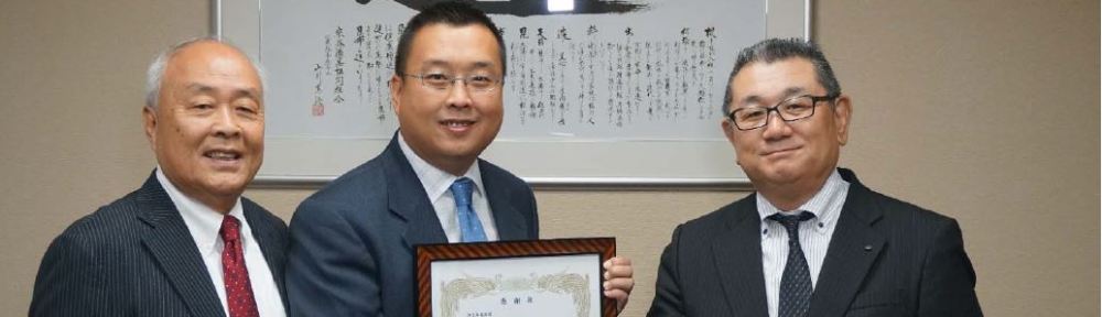 北海道漁業協同組合連合會代表理事常務山口重幸 Juko Yamaguchi 代表頒贈給許氏參業集團20 年感謝狀,嘉許這麽多年許氏參業在北美洲的努力。山口先生表示,用新鮮幹貝制成幹貝(江瑤柱)在日本已經有超過150 年的歷史,從明治時代起就開始制作,北海道幹貝(江瑤柱)工廠目前有19 家。食用幹貝(江瑤柱)的市場除了亞洲的華人地區之外,北美洲是最重要的銷售市場,借由許氏參業擁有完整的銷售通路布局以及對於產品所付出的心力推廣,每年雙方都有許多機會見面交流。雙方合作至今剛好滿20 年,是一個非常重要的裏程碑,更是不可多得的好夥伴。許氏參業總裁許恩偉也回贈了一幅許氏參業的花旗參農場手畫作給北海道漁聯,雖然雙方一海一陸,一東一西,可是從地理座標上來看,北海道和威斯康辛州的緯度相同,由此表示對於彼此產品的相知與重視。