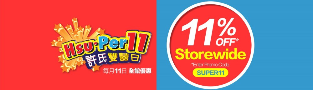 Enter Promo Code SUPER11, and enjoy 11% OFF immediately on the 11th Day of Every Month at Hsu’s U.S. Online Store.