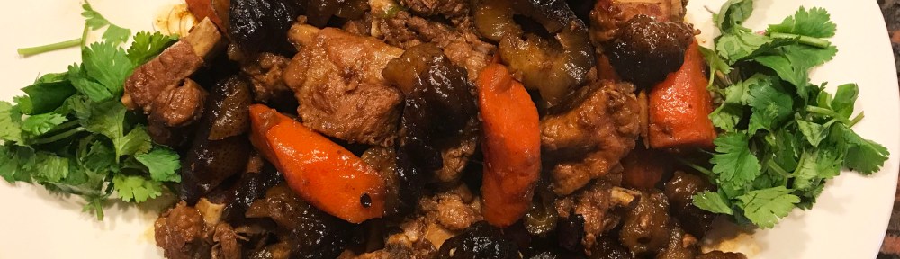 - 熱油鍋,先爆香薑片、蒜頭後,再放入排骨翻炒出香味。