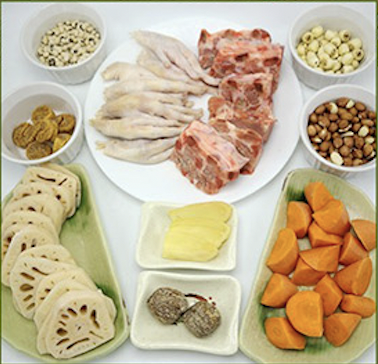 蓮藕600克、花生150克、 眉豆120克、蓮子30克、 猪骨300克、雞腳10隻、 干貝6粒、紅蘿萄200克、 蜜棗2粒、薑數片