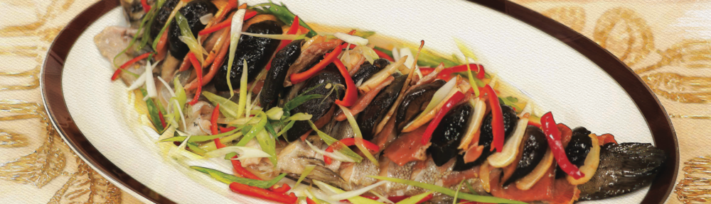 這道象徵祥瑞的清蒸麒麟魚,是將魚身以斜刀片開,加上火腿片、香菇片及新鮮花旗參片等食材互相交錯疊放,色彩鮮豔呈麒麟狀而名之。清蒸的麒麟魚肉質鮮香嫩滑,搭配火腿及冬菇的味道,層次分明,還有畫龍點晴的新鮮花旗參片,味道更加鮮美,是一道喻意吉祥的年節佳餚。