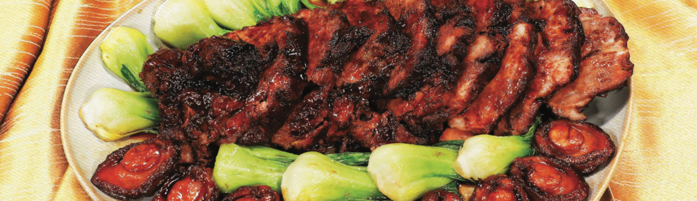 「竹報平安」這一成語,出自《酉陽雜俎續集·支植下》,意為舊時報平安的家書,現在則成為新春期間,時常會用的吉祥賀詞。在此歲末之時,做一道以「豬」的梅花肉與原隻「鮑」魚為食材,取其諧音而命名的「竹報平安」,真是再合適不過了。