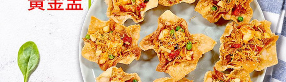 前菜系列3,準備一道清脆爽口的前菜~鮮參蝦鬆黃金盅。相信大家對生菜蝦鬆一定不陌生,但是今天小廚要和大家分享創意版的蝦鬆喔!小廚特別在食材中加入了鮮脆爽口、入口回甘的新鮮花旗參丁及以北海道干貝絲,同時還以炸得香酥脆口的黃金盅代替生菜,將帶有甜味和清脆特性的食材與炸得香香脆脆的黃金盅互相搭配,豐富的色彩和多層次的口感,保證令大家讚不絕口!