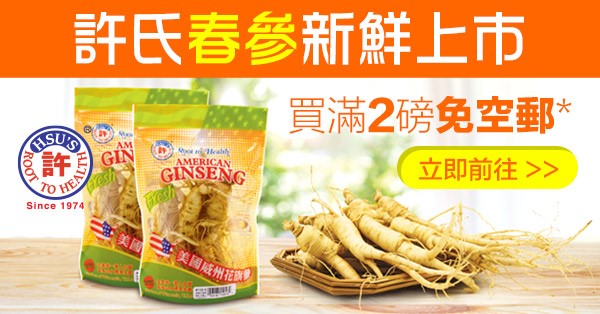 許總:現在網購是很方便的。可以直接在許氏官網(www.hsuginseng.com)下單,美國境內本土48州采用2天空運直送到家,從出土到收到新鮮參,只需要花5-7天時間,是非常新鮮的。另外,也可以在我們在美國各地的經銷商、參茸行還有本地的壹些食品雜貨店找到許氏的新鮮參。